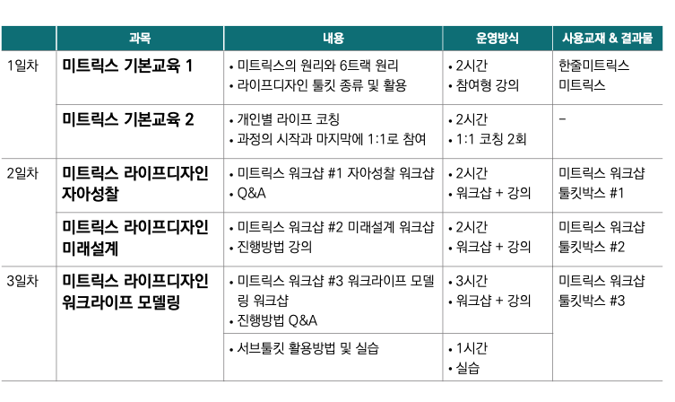 미트릭스 자격증 과정표